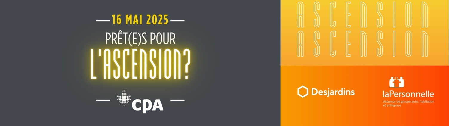 Vous assisterez à l’événement? Il est possible qu’on immortalise en images et en vidéos votre passage parmi nous et qu’on diffuse ce contenu, tout comme votre nom, dans les différents moyens de communication de l’Ordre, des regroupements régionaux, de la Fondation des CPA ou de tierces parties, sans indemnité et selon le délai prévu par l’Ordre, le tout dans le but de contribuer au rayonnement de la profession. En participant à l’événement, vous consentez à cette utilisation.